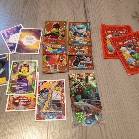 Myynnissä sekalainen kasa Lego Ninjago kortteja, sekä muutama Lego Chima kortti mukana. Korteissa näkyy leikin jälkiä, mutta ehkä jollekin keräilijälle iloa löytyy silti näistä.