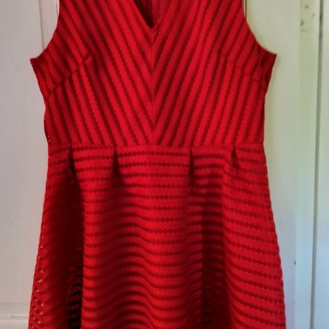 Punainen mekko, koko L. Kainalo-kainalo n. 55 cm, olka-helma n. 93 cm. Mekossa on taskut. Pinnassa hieman pesunukkaa, mutta yleisilmeeltään siisti.