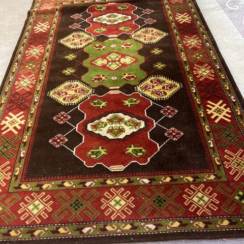 Myynnissä hyväkuntoinen itämainen käsinsolmittu villamatto mitat 102/164 cm. Hajuton.