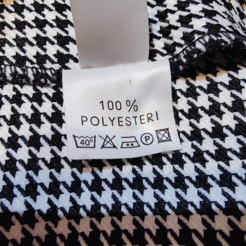 Mekko on polvipituinen. Kun jakku puettu, niin mekkoa näkyy vajaa 20 cm.