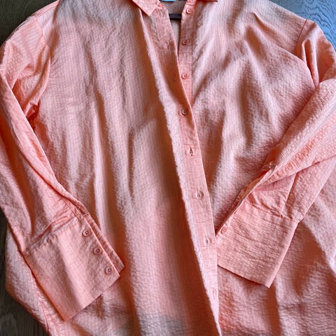 Naisten hyväkuntoinen paita. Koko 38. Laskeutuvaa, liukasta materiaalia.