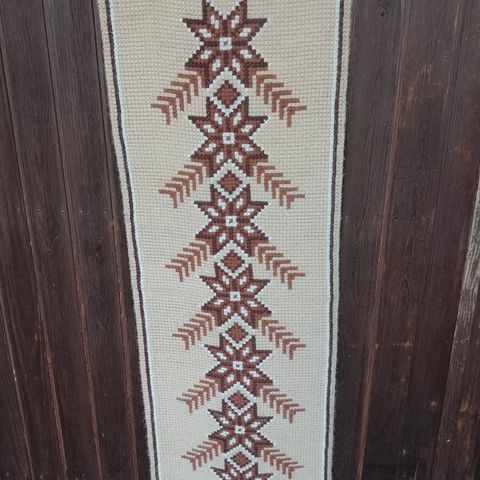 Upea vanha ristipistos seinävaate 60cmx117cm.kuvio 100%villa.puupidike 70cm.