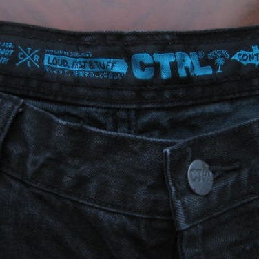 Siniset farkut punaisilla yksityiskohdilla