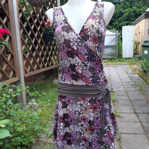 Punaisella pohjalla söpöjä pieniä kukkia. Kaula-aukon saa laskettua halutessaan olkapäille. Korkealaatuinen, pehmeä ja joustava kangas viskoosia, villaa ja elastaania. Made in Italy.