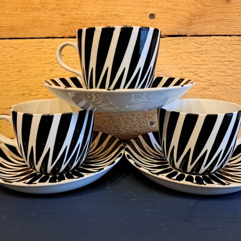 Aivan ihanat Toini Muonan käsinmaalatut 6kpl Toini-kahvikupit+tassit olisivat valmiit uuteen kotiin. Eivät paljoa kalpene pakasta revityille priimakuntoisille, ellei jopa ole käynyt niin ettei näitä ole koskaan käytettykään. Itselläni ovat olleet nämä 6kpl koristeena vitriinissä. Koska ovat tosiaan käsinmaalattuja on joka kuppi yksilönsä ja taiteilijan käden jälki näkyy 🖤 300e eli 50e kuppi+tassi pari. Saa tarjota! Sijainti Hämeenlinna, mieluiten nouto. Postitus mahdollinen ostajan kustantamana ja saa antaa vinkit kuinka tälläset uskaltaisi lähettää. Lähetän isoimmassa paketissa nämä jotta saavat mahdollisimman paljon suojaa :)