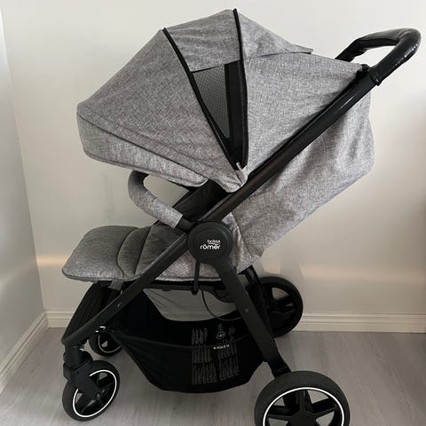 Britaxin rattaat toimii, selkänojan pystyasennon kiristys vaatii vähän huoltoa, mutta muuten ominaisuudet toimii. Putsaaminen jää ostajalle. Etukaari puuttuu.