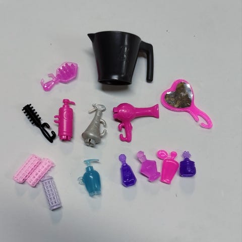 Uuden veroinen setti, jossa Hair Feature Barbie tavaroineen.