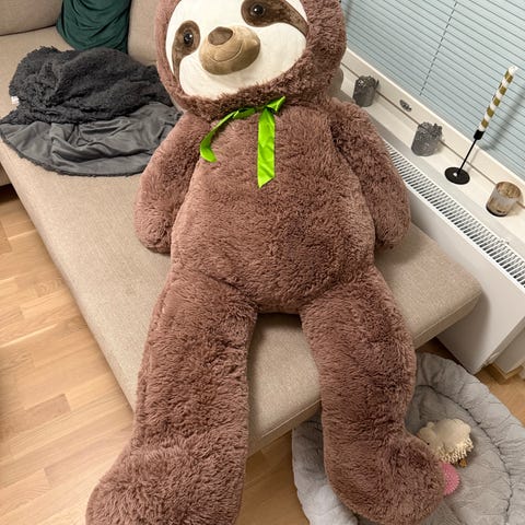 Pehmon kaulassa on reikä, saa varmasti ommeltua takaisin siistiin kuntoon.
