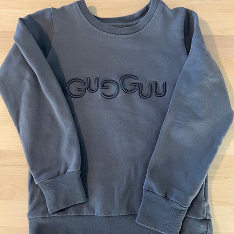 Myynnissä Gugguun vaaleanvihreä collegetunika koossa 116. Sivuilla taskut.