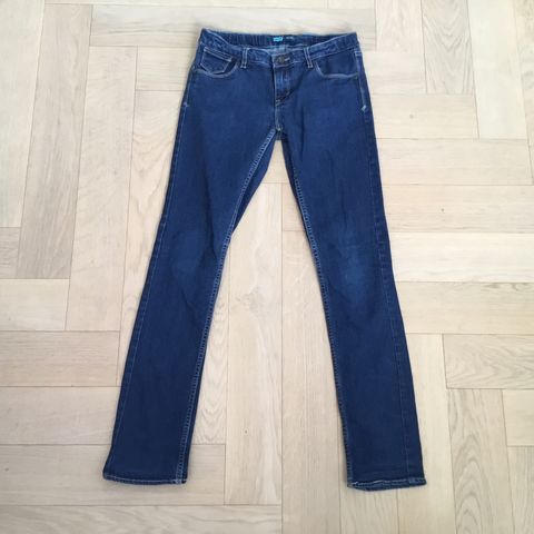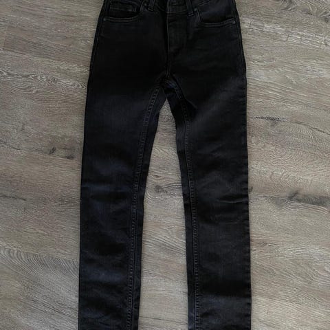 Valmistettu denimmateriaalista. Farkuissa on takataskut ja vyölenkit.