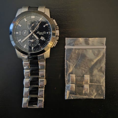 Käyttämätön miesten kello. Vaatii patterin vaihdon joka on huomioitu hinnassa.
