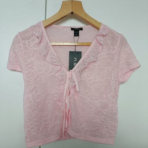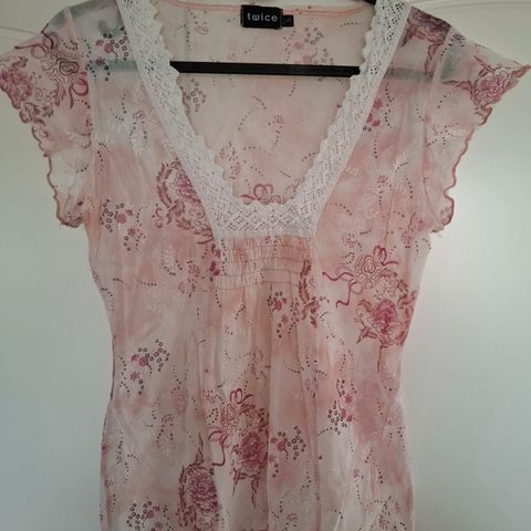T-paita pitsikoristeisella kauluksella