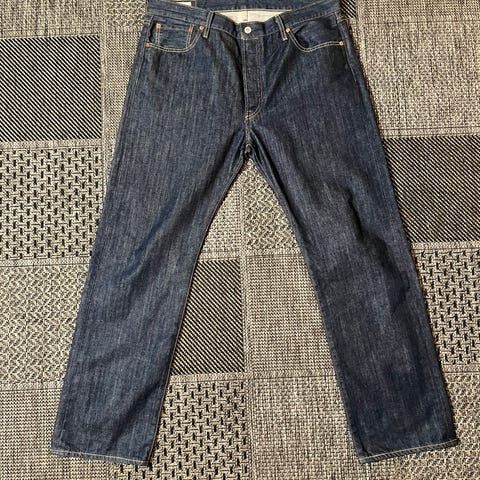 Kokolappu 31/32 modernia Levis koko eli siis käy yhteen yleisen standardikoon kanssa eikä ole normaalia pienempää kuten vintage Levikset. Tässä yksilössä on ehkä väärä kokolappu koska istuu tilavasti, epäilen että kokolappu voisi olla myös 32/32 tässä.