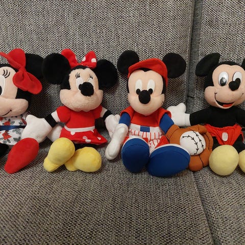 Myydään Mikki ja Minni lelut. Päät on kovaa ja vartalo pehmeää. On vanhoja.