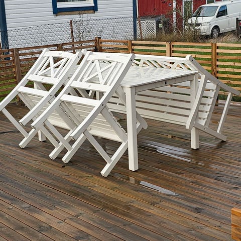 Jutlandian kovapuinen pöytä ja 4 kokoontaittuvaa asentotuolia