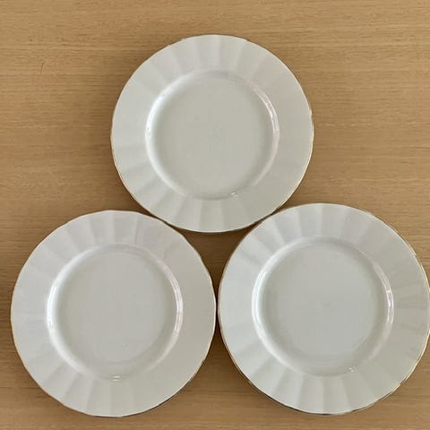 Arabian kakkulautasia kahta eri mallia, yhteensä 5 kpl. Halkaisijat 15,5 cm (Kiina-malli), 17 cm (kukka-malli).