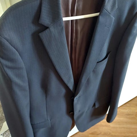 Myydään loistava kuntoinen miestenpuku. Puku on tummansininen, housut ovat sävyä tummemmat, mutta menevät yhdessä näyttävänä kokonaisuutena. Takki on kokoa 48 ja housut W34 / L 32. Molemmat malliltaan "slim fit"