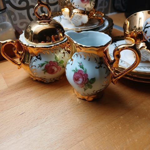 Käyttämättömät sievät kukalliset astiat