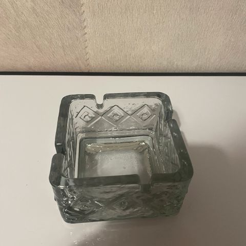 Virheetön, mitat 9,5x9,5 x 6 cm. Riihimäen Lasin tekemä.