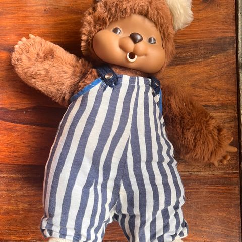 Myynnissä käytetty, mutta silti ok-kuntoinen Moncchichi -apina. Kulumaa näkyy vähän lelussa, jotka näkyvät kuvissa, mutta tästä silti keräilijälle tulee varmasti iloa.