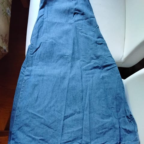 Puuvilla materiaalia. Kiristysnauha vyötäröllä. Edessä napit. Vaatteessa on taskut. Rento malli.