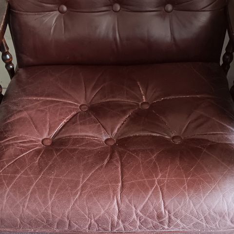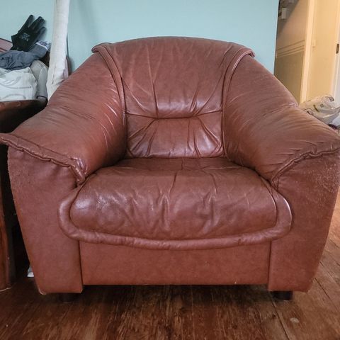 Ruskea nahkainen nojatuoli.