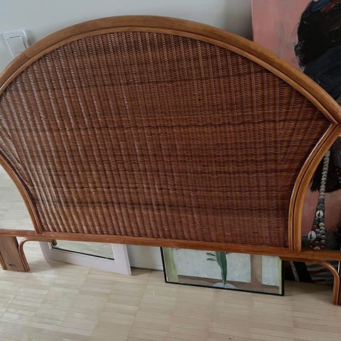 Siistikuntoinen rottinki sängynpääty, väri: valkoinen, 160 cm leveän sänkyyn.