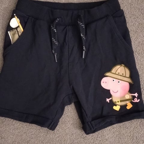 Ihana Pipsa Possu shortsihaalari seuraavalle. Kokolapussa lukee 2-3 vuotta mutta omalla lapsella meni parhaiten 82-86 kokoisena!