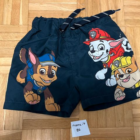 Siistit name itin keltaiset uimashortsit tummansinisillä kuvioilla kokoa 86cm. Sisäpuolella verkkopöksyt. Vyötäröllä kiristysnapit.