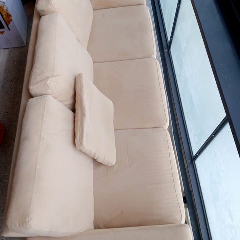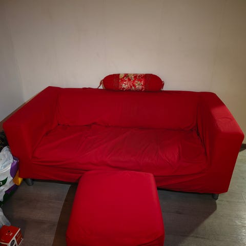 Punainen kahden istuttava sohva + rahisetti. Pelkistetty ja tyylikäs muotoilu, käytännöllinen ja helppokäyttöinen. Kirkas ja elävä väri tuo sisustukseen pirteän lisän. Hyvin säilytetty, mukava ja pehmeä.