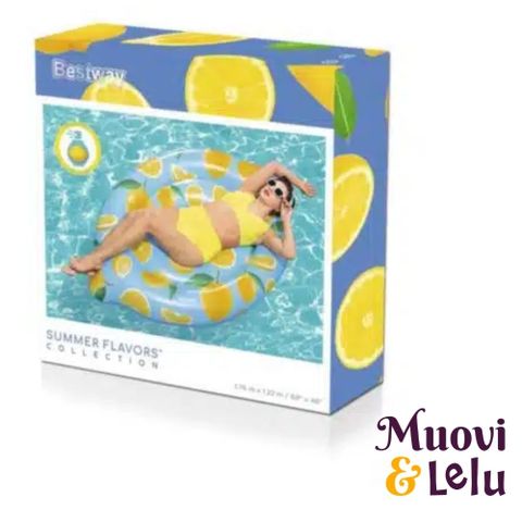 Vadelma-uimapatjassa on pirteä vaaleanpunainen vadelma kuosi ja vadelman hajuinen tuoksu.