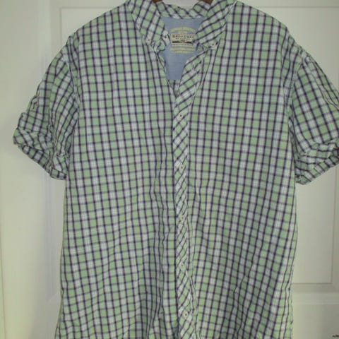 Paita on periaatteessa ehjä ja siisti. Kauluksessa on kangas irronnut vähän sisällä olevasta tukikankaasta. Jää vähän ryppyinen jälki. 3e