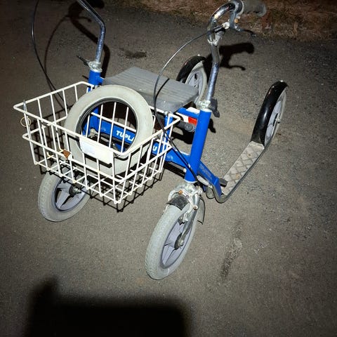 Toukokuussa 2025 ostettu (539 €) CityMAX-potkurollaattori (myydään, koska käyttäjä tarvitsi rollaattorin pidemmillä jalaksilla). Kotimainen (E.S.Lahtinen Oy). Mukana istuin, soittokello, puolaheijastimet, etukori ja lukko. Leveys noin 60 cm ja pituus noin 123 cm. Korkeus säädettävissä - kuvassa noin 89 cm.