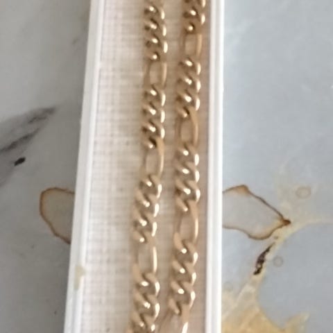 Pari kertaa käytetty kullanvärinen kaulakoru. Pituus 56 cm. Materiaali: ruostumaton teräs. Leveys 2-3 mm.