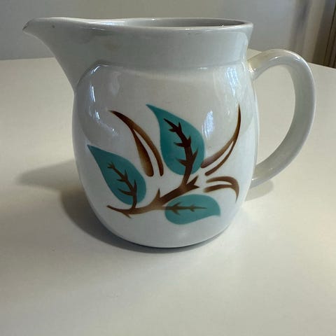 Hyväkuntoinen Arabian Oksa-kannu. Vetoisuus yksi litra. Korkeus n. 13 cm.
