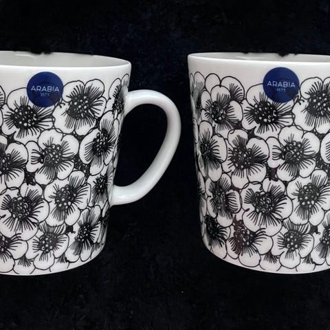 Arabia musta muki. Hieno ja tyylikäs. Hyvässä kunnossa. 10 e / kpl.