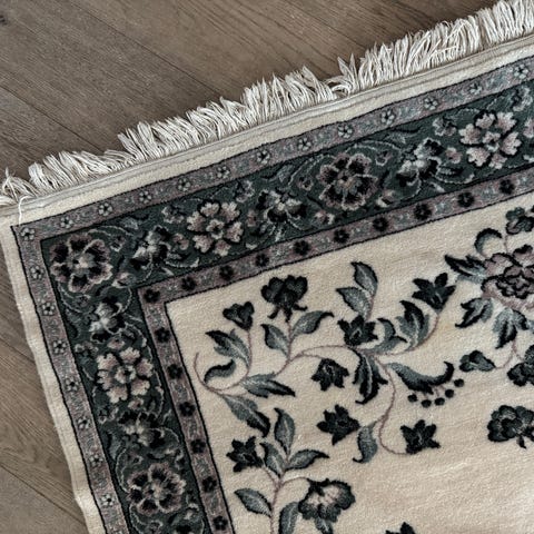 Kaunis mustan ja vanhan roosan sävyinen villamatto. Koko 170x230. Juuri pesetetty pesulassa (61€).