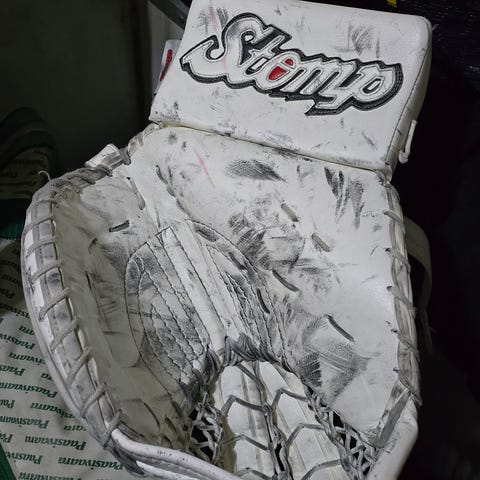 Käytetty ja korjailtu, mutta hyvin tällä pelaa vielä. Senior-kokoinen
