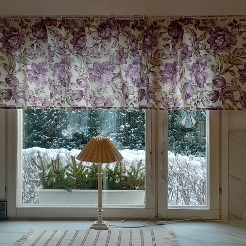 Piiiiiitkä musta verhokappa. Ommeltu neljästä pätkästä yhteen. Yksi pätkä 130cm, eli voi raksia erilleen jolloin on neljä lyhyempää pätkää.