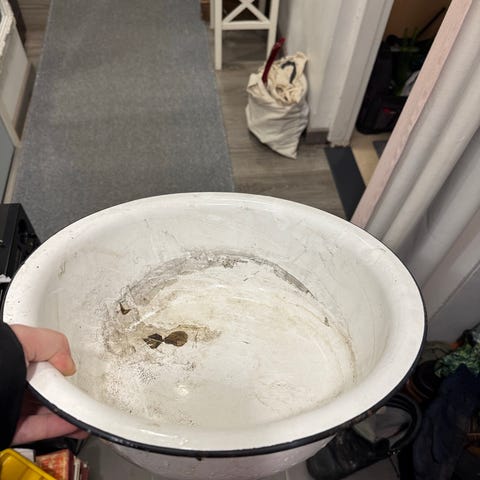 Tukeva ja vahvoilla kantokahvoilla varustettu kotimainen saavi, joka sopii hyvin ulkokäyttään, kuten sadeveden keruuseen.