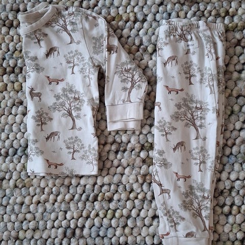 Hyväkuntoinen Newbie yöpuku, koko 86. Käy jopa 92 asti. Hihassa haaleaa tahraa, joka ei lähtenyt normaalipesussa. Muuten kunto olisi erinomainen.