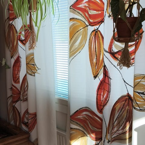 Kauniit verhot. Itse ommeltu. Kääntövarassa varaa lisäpituuteen.