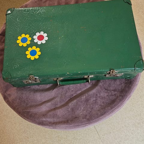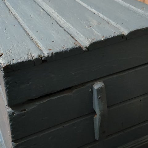 Karjalan evakkoarkku, esimerkiksi sisustukseen, nimi karvanen kirjailtu kanteen, siis todella vanha.