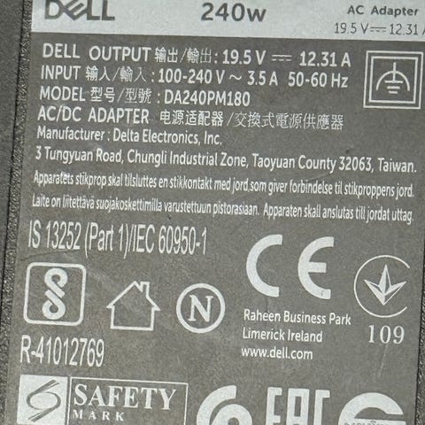 Dell 180.0W AC Adapter, virtajohto on mukana.
