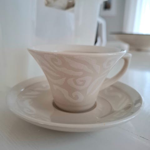 6 x kahvikupit, 6x lautaset, 1x kuppi yhteensä 90€ tai yksitellen 8€/kpl.