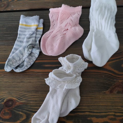 Myydään settinä kahden vauvojen juhlasukat / röyhelösukat. Hyvä käytetty kunto.