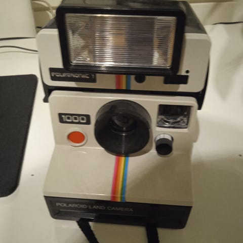 Vanha Polaroidin kamera 5 tuuman linssillä. Pientä likaa ja naarmua joissain kohdin ulkopuolella. Toimivuudesta en osaa sanoa, jäänyt edesmenneeltä kameroiden keräilijältä.