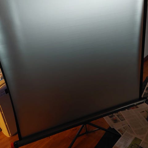 Myydään hyväkuntoinen projektori- helmiäiskangas. Kangas avautuu metallikotelon sisältä kätevästi sitä tarvittaessa ja menee myös kätevästi rullalle metallikotelon sisään, kun projektorikangasta ei tarvita (se ei vie myöskään paljon tilaa). Kankaan koko on 124 cm leveys ja 172 cm korkeus. Pakattuna telineen kokonaiskorkeus on 173 cm.