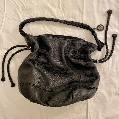 Ruskea nahkalaukku.. monta erilaista taskua.. niin sisä kuin ulkopuolellakin..