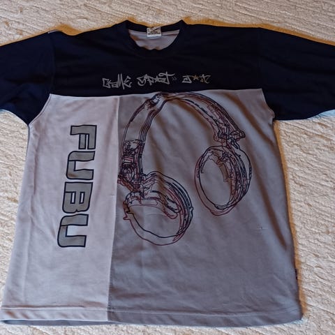 FUBU vetoketjullinen t-paita. Verkkokangasta osin, mistä näkyy läpi
